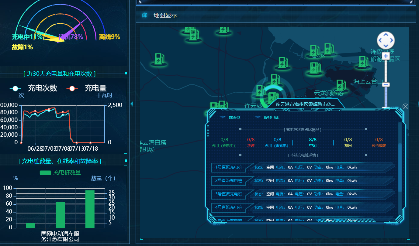 本周公司继续对新能源部分整体显示界面进行微调整,后台数据通过中间件数据库获取,充电记录转发程序已经部署,充电记录2小时同步一次,充电桩每天同步一次,进而达到平台数据之间的互通。在线率和故障率的数据接口还在开发中预计下周完成,进而整个新能源部分完成。