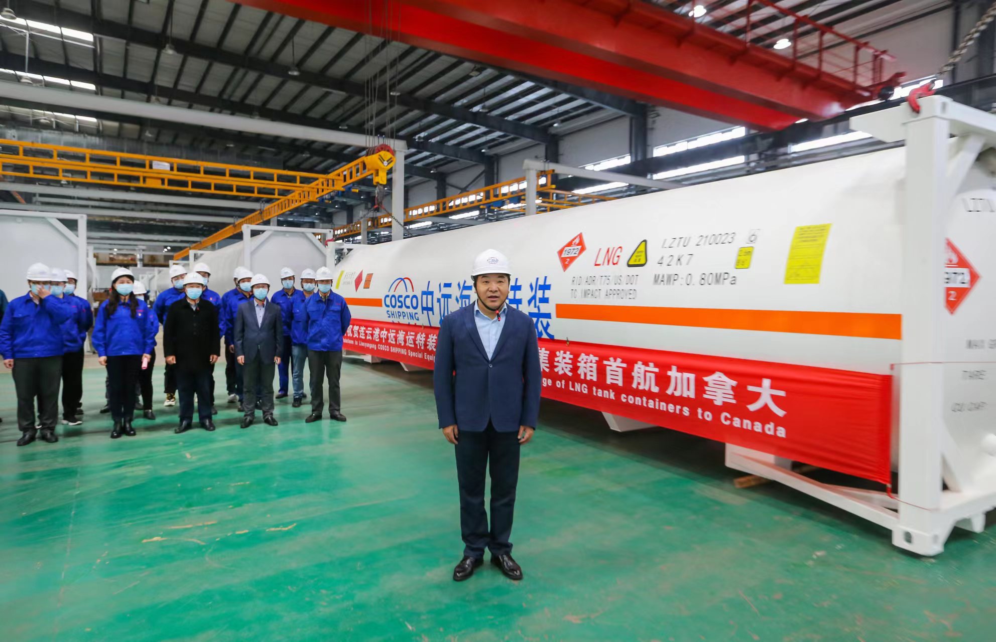 11月24日下午,交控物流江南app最新版下载,江南(中国)LNG罐式集装箱首航加拿大发运仪式在中远海运特装公司成功举办,交控物流江南app最新版下载,江南(中国)总经理张国兴、副总经理左志军、总经理助理王高林及相关部室负责人、特装公司部分领导班子人员参加。