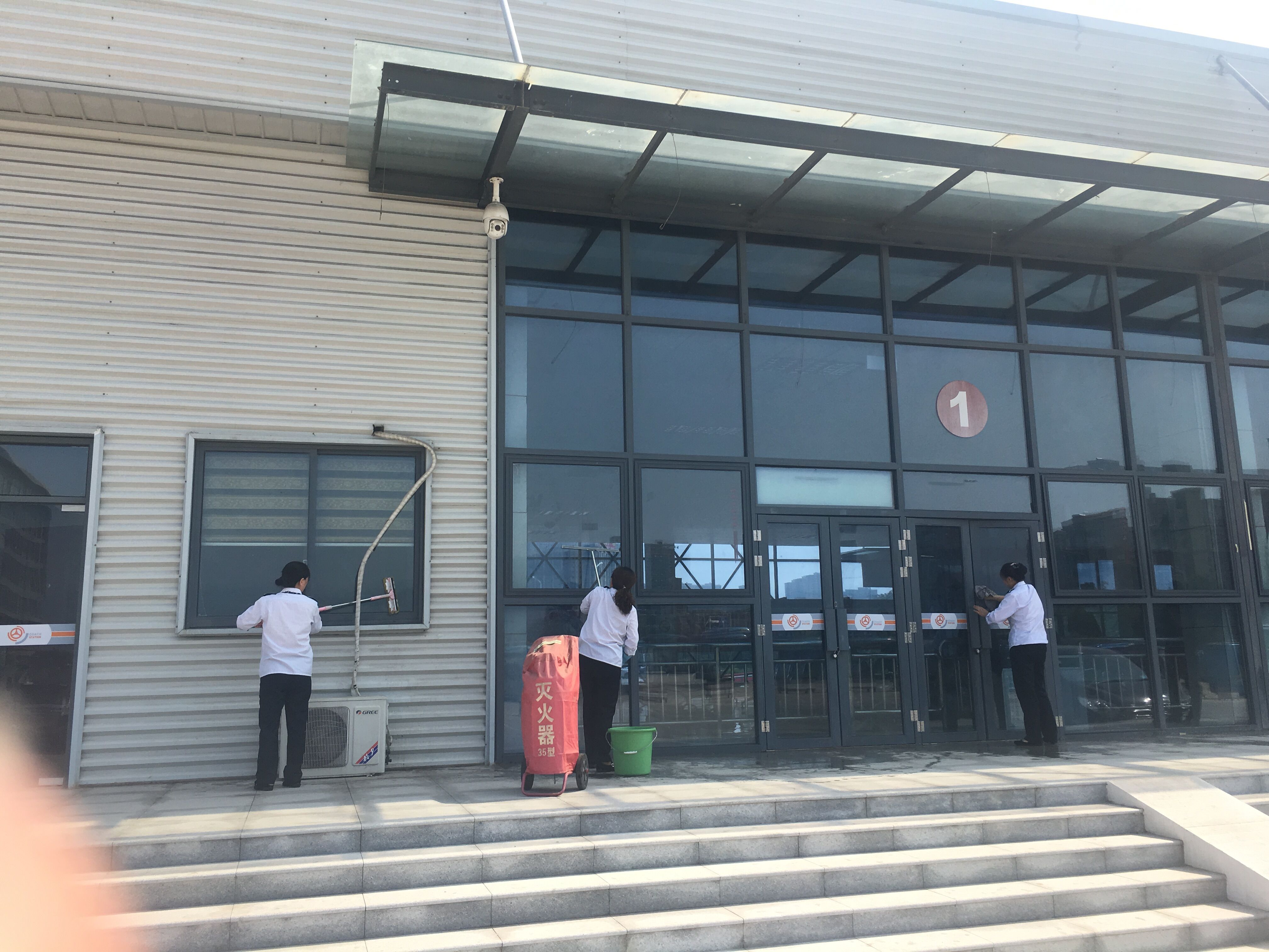 活动对清洗区域进行划分,党员干部和站务人员分工协作,一班组负责站前广场和进站口的玻璃,二班组负责发车区和检票口的玻璃,大家按照分组拿起工具,加入擦玻璃净环境的行动中。大家配合有序,有的拿抹布,有的拿水盆,充分发扬不怕脏、不怕累的优良作风和团结协作的精神,经过将近1个小时的的共同努力,客运东站的玻璃被清理的干干净净,焕然一新。