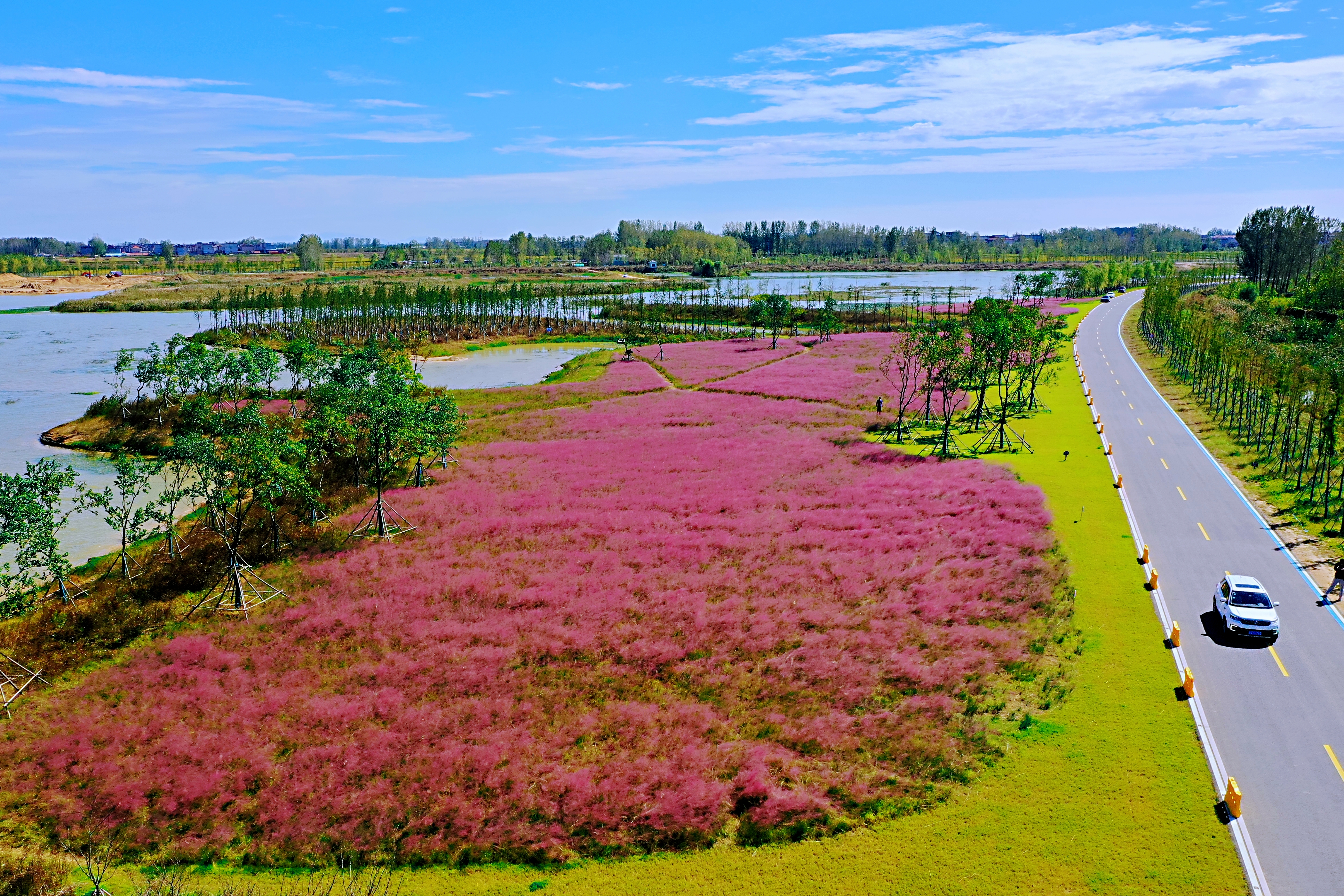 道路硬化也是一期工程的重点项目。环湖路上,几位小伙子正在练习滑板,“这路平整,路面光滑,周围风景又好,我们每周都约着过来滑一下午。”练习了两小时长板平花动作的小梁大汗淋漓,“不过这条路好长,我们还没有滑到尽头。”