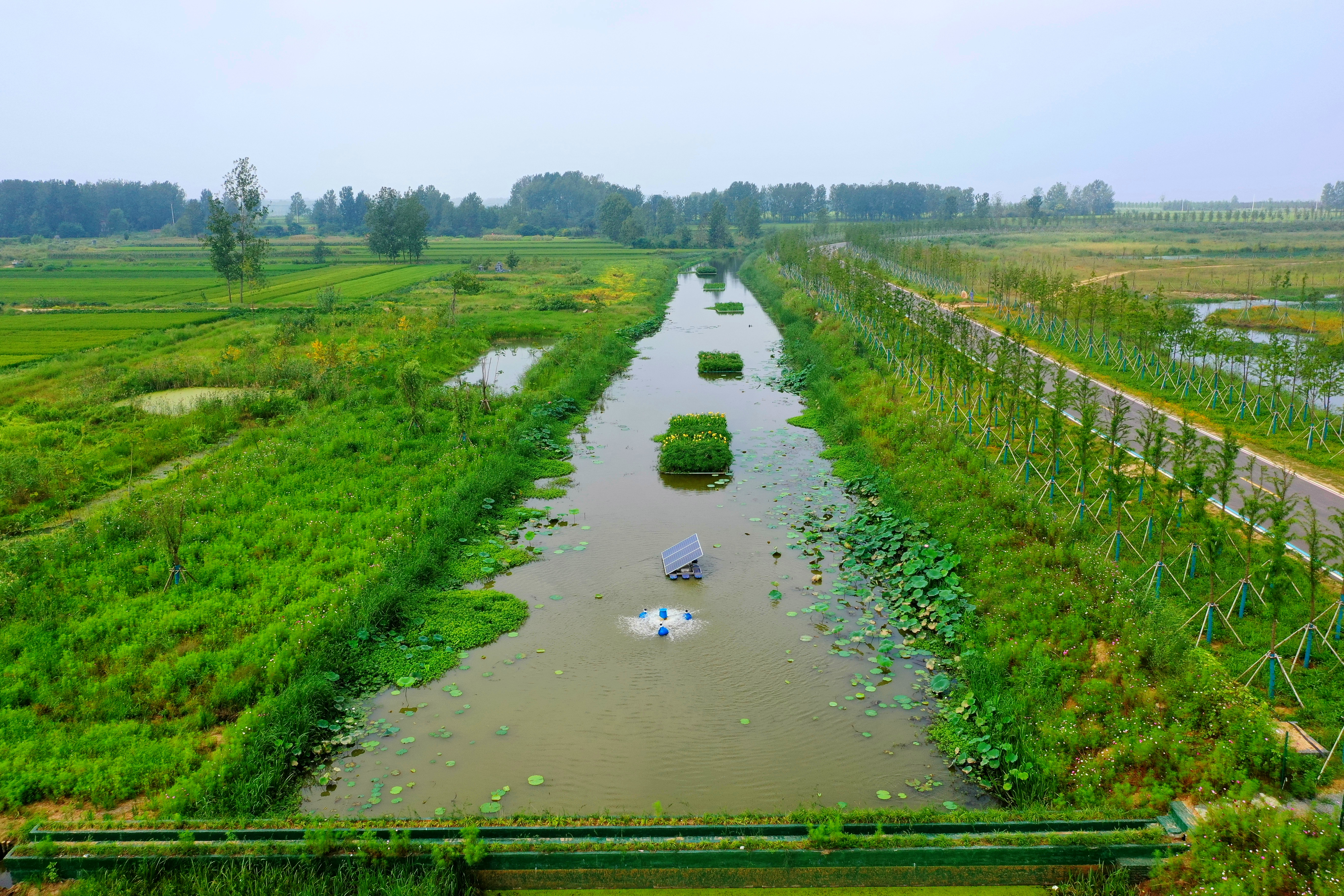 近日,在石梁河水库沿线刘金村、贾庄村等截污治污示范点,杉木桩、生态浮床、管涵、拦水坝、垃圾截留网、曝气装置等大量专业设备正常运转,水生植物、缀化高草地、垂柳、景观石等大片绿化景观错落有致。曾经脏乱差的沟渠,已经成为雅致美观的村庄小景。