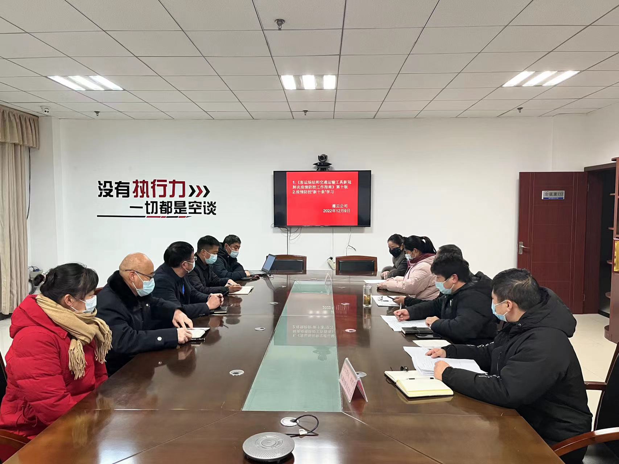 公司权属各客运站组织学习传达了《关于进一步优化落实新冠肺炎疫情防控措施的通知》《客运场站和交通运输工具新冠肺炎疫情防控工作指南(第十版)》,从消毒通风、运输组织、人员防护与健康监测、应急管理、防疫宣传等方面对道路客运内容进行了重点讲解。