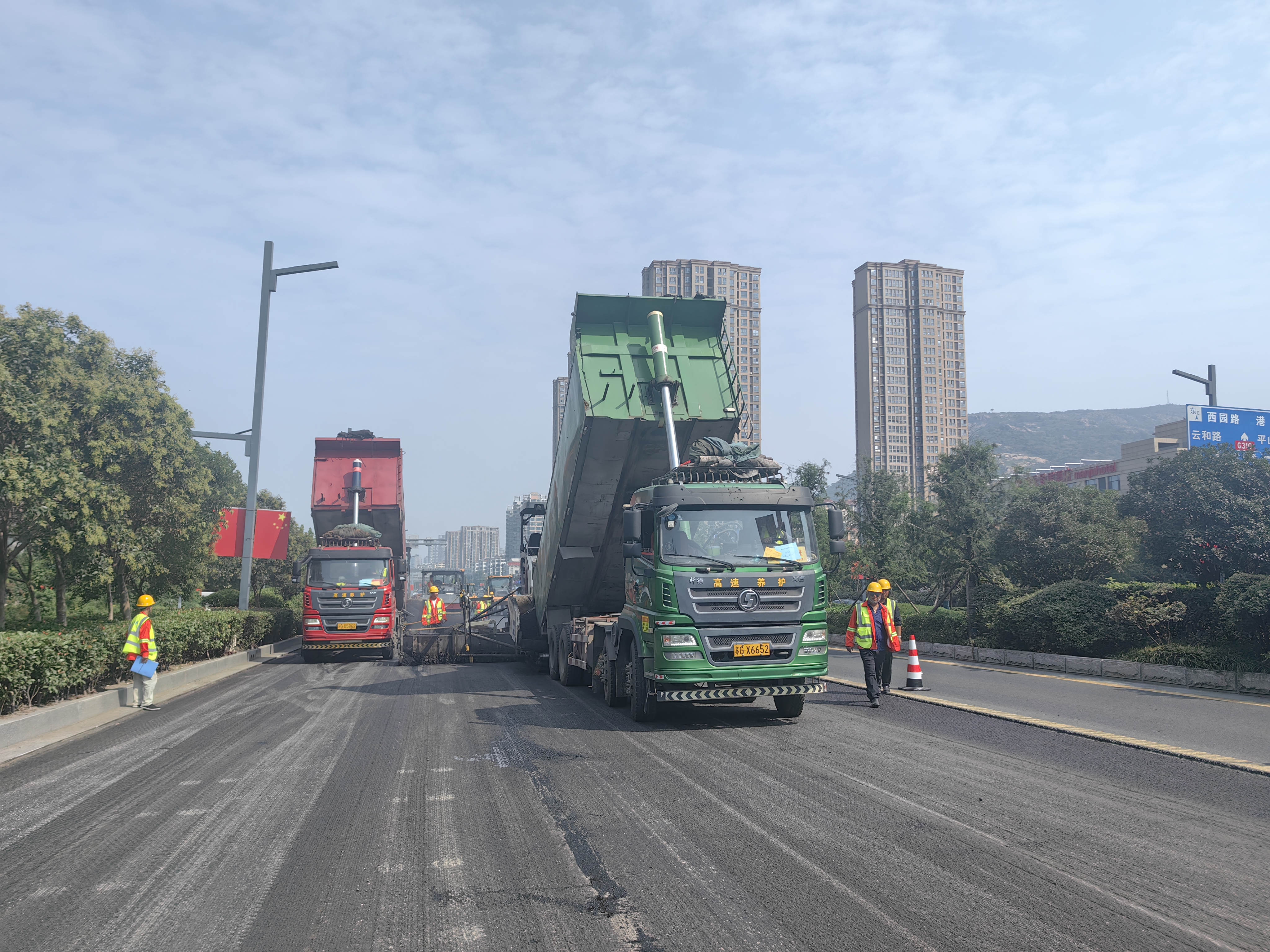 该工程原计划工期为90天,为了减少港城大道交通压力,公司抢抓当前施工黄金季节,安排昼夜加班加点,全力以赴赶进度,采用即铺、即检、即开通的方式,将工期缩短在30天内,计划于10月底完成主体工程。