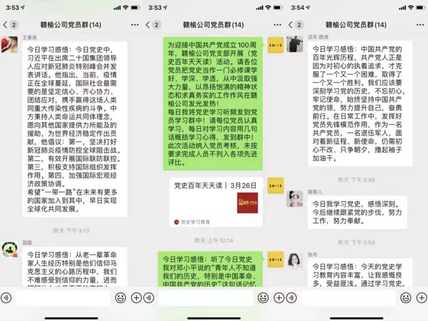 为迎接中国共产党成立100周年,深入学习党史教育,连汽赣榆公司党支部创新学习形式,自4月7日以来,利用党员学习群开展“党史天天讲”微感悟活动。