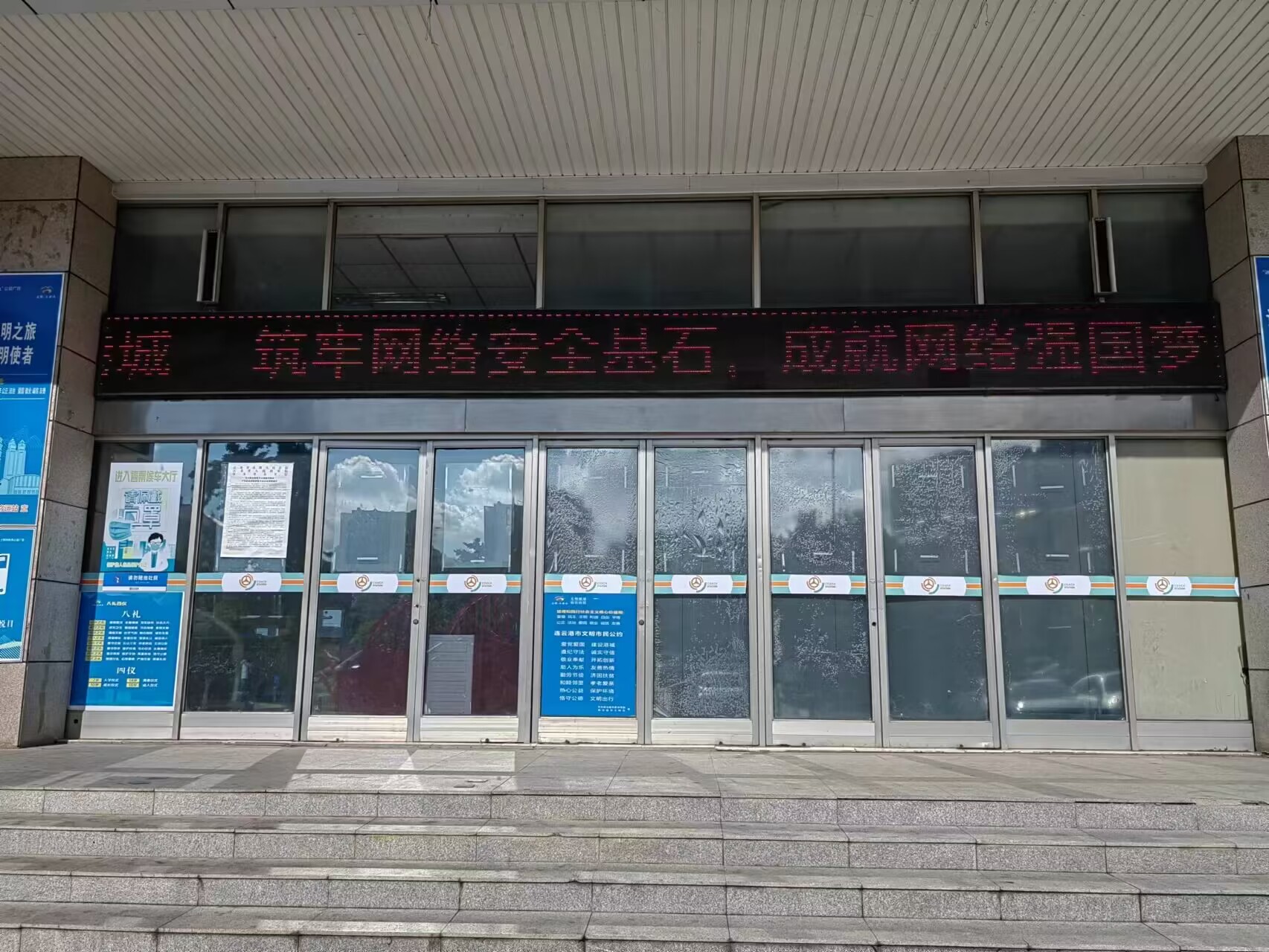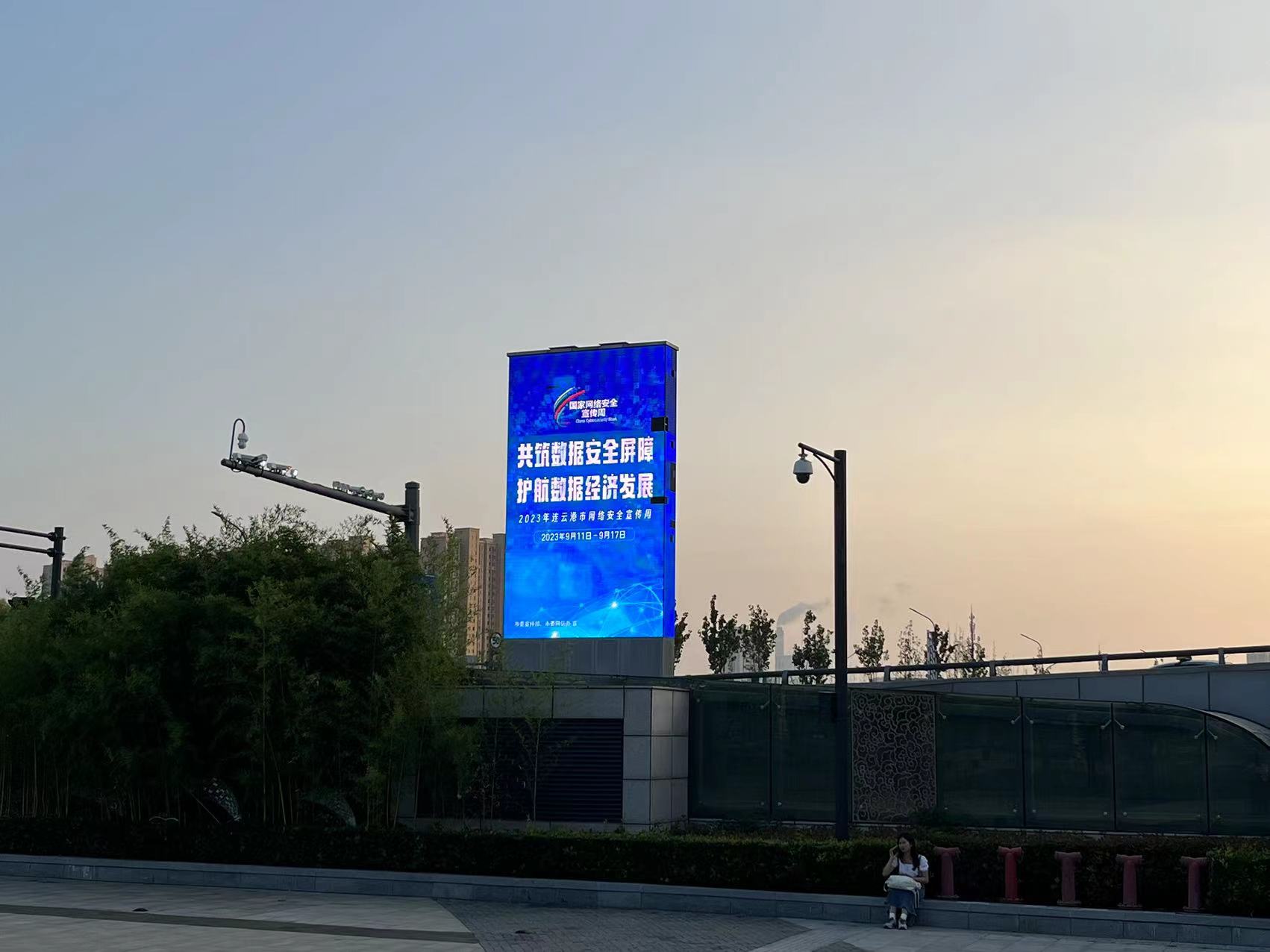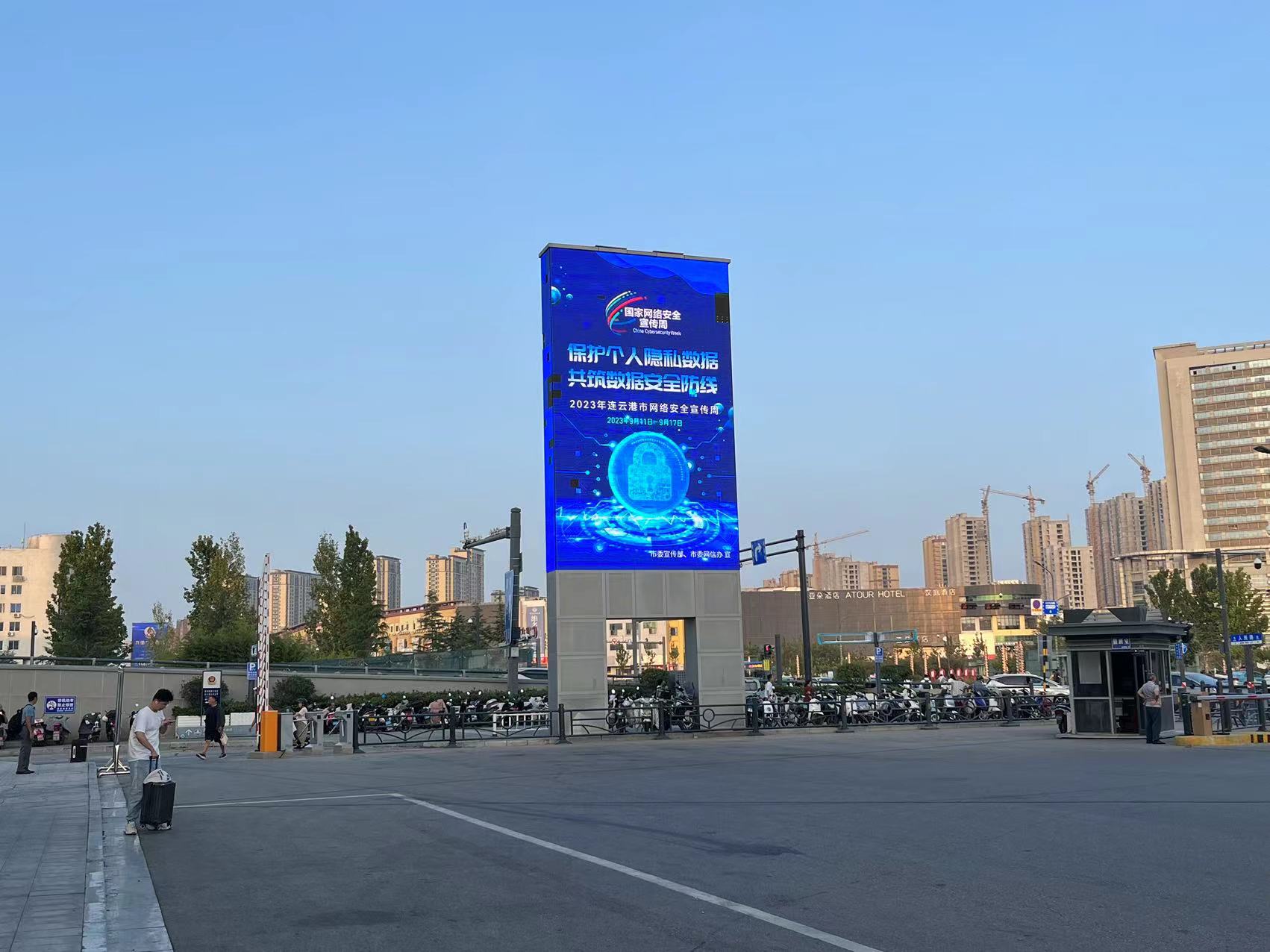 在苏欣快客站户外LED条屏投放了宣传标语,面向社会及进站旅客宣传网络安全知识