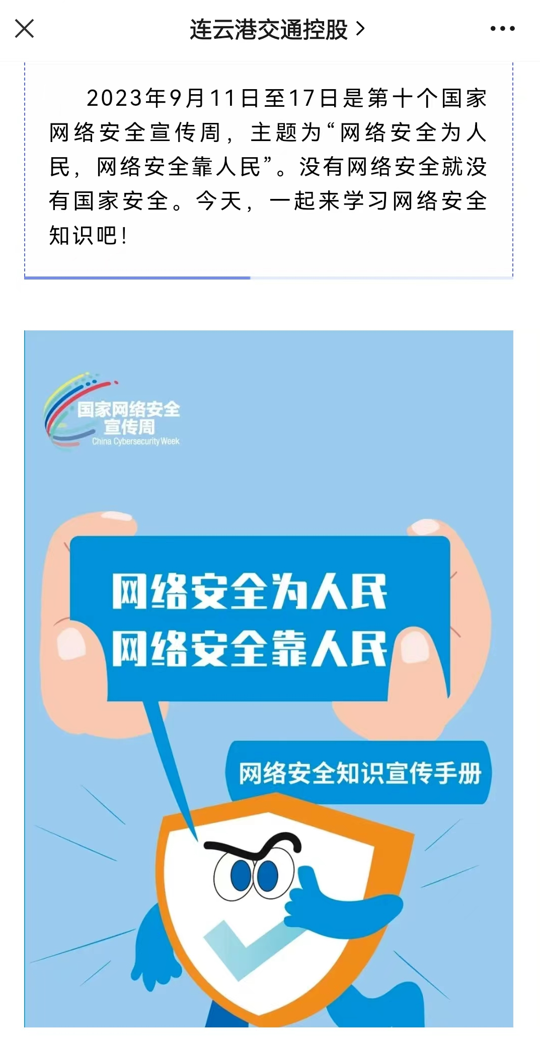 9月11日至17日,是第十届国家网络安全宣传周。活动期间,江南app最新版下载,江南(中国)积极营造宣传氛围,通过“线上+线下”相结合的方式,发挥交通产业优势,普及网络安全知识,提高全民网络安全防范意识和应对能力,助力2023年度网络安全宣传周活动顺利开展。