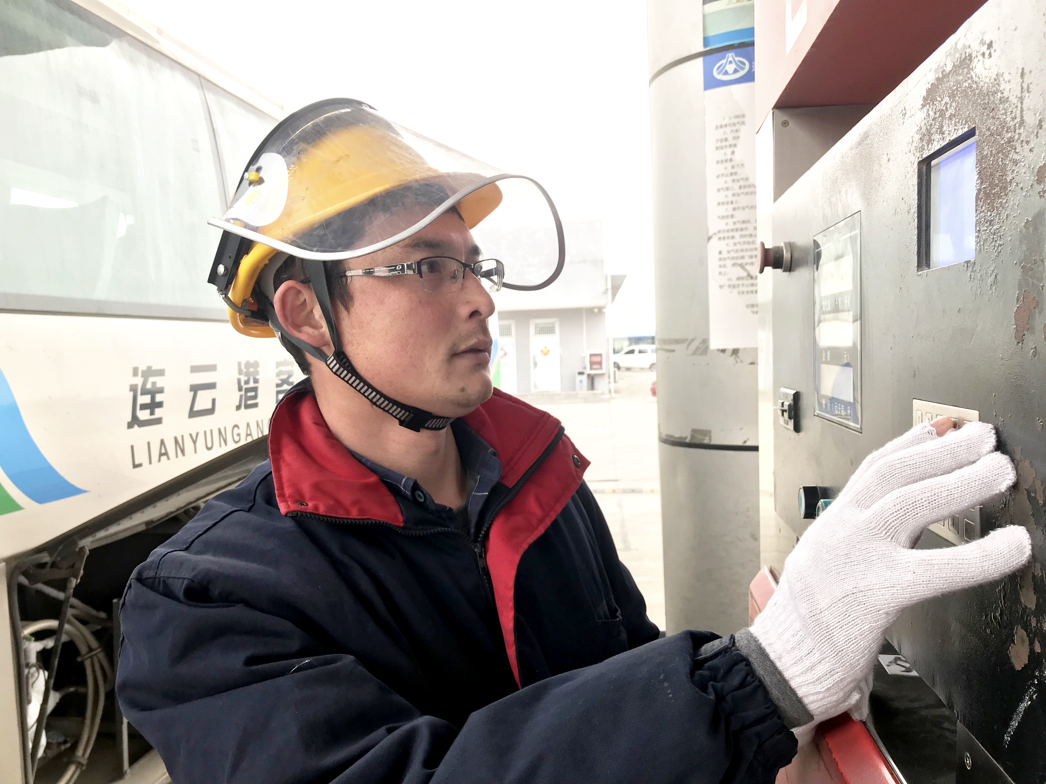 “好!”,张小可喊出这嘹亮的一嗓子,随着公交车的停稳,高举的手臂缓缓落下。清场、穿戴防护用具、检查气瓶、连接静电接线夹、吹扫车载气瓶充装口、吹扫LNG加液枪、点击加注,所有动作一气呵成。“我们必须学会辨识风险,才能消除安全隐患,我们每个人都是加气站的一枚保险丝。”张小可一边给实习的充装员演示着充装操作规程,一边念叨着。
