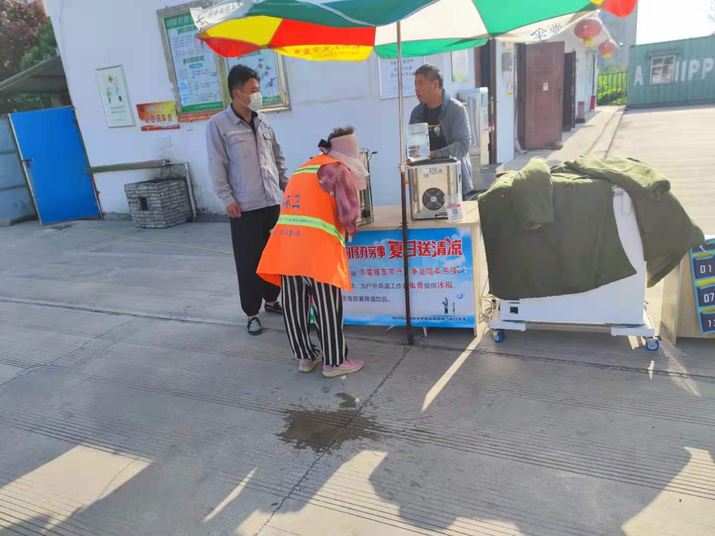 四年来,每到高温季节,加气站党支部都会组织送清凉活动,表达对一线工作者的关爱,通过公益传递温暖,为坚守岗位的户外工作者送去一丝“清凉”,将“用心学党史,为民办实事”落实到实处。