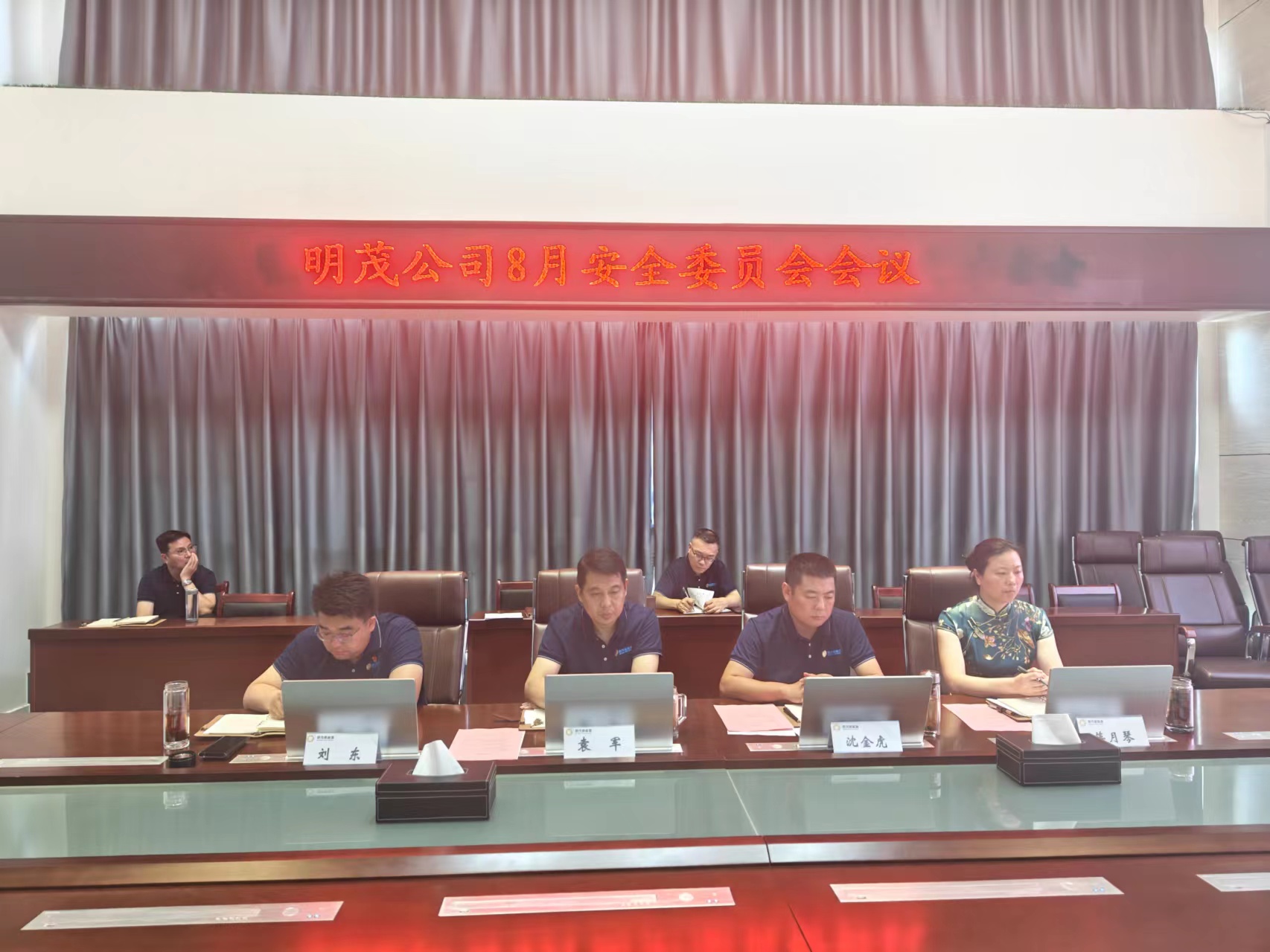 8月16日上午,明茂公司召开2023年8月安全委员会会议,本次会议由公司副总经理、安委会副主任沈金虎主持,公司领导班子全体成员、各部门负责人、权属公司负责人及一线班组长参加会议。
