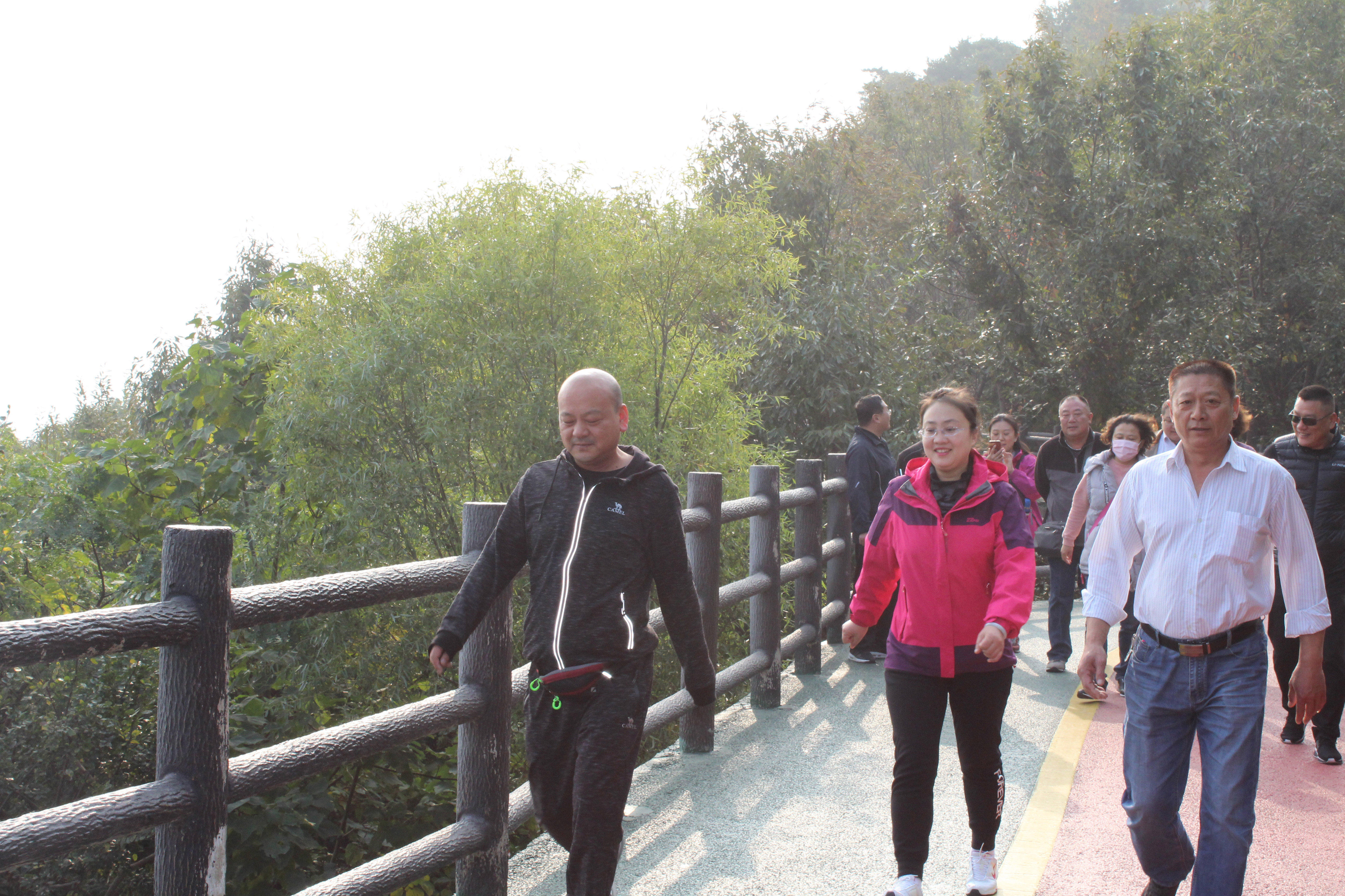 1026上午,长途公司经理陈康带领职工集体乘车到北固山南门,由健康步道的起始点,沿海边景观道徒步走。北固山健康步道全程为5000米,集防火栈道、景观平台、悬空栈道、植被绿化、休闲运动为一体的最佳健康步道。全程有山海连云、刘沟景观平台、麻栎岭、西湾景观平台、叠石岩观日岩等十三个景点。带着轻松愉快的心情,大家时而望望远处海天交接的美景,时而看看步道两边的花草树木,三三两两徐徐前行,一路欢歌笑语,向着终点前进。