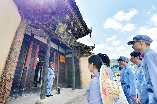 福建省长汀县中复村的红军烈士后代向参观学习的党员干部讲述长征的故事。 新华社记者 魏培全 摄