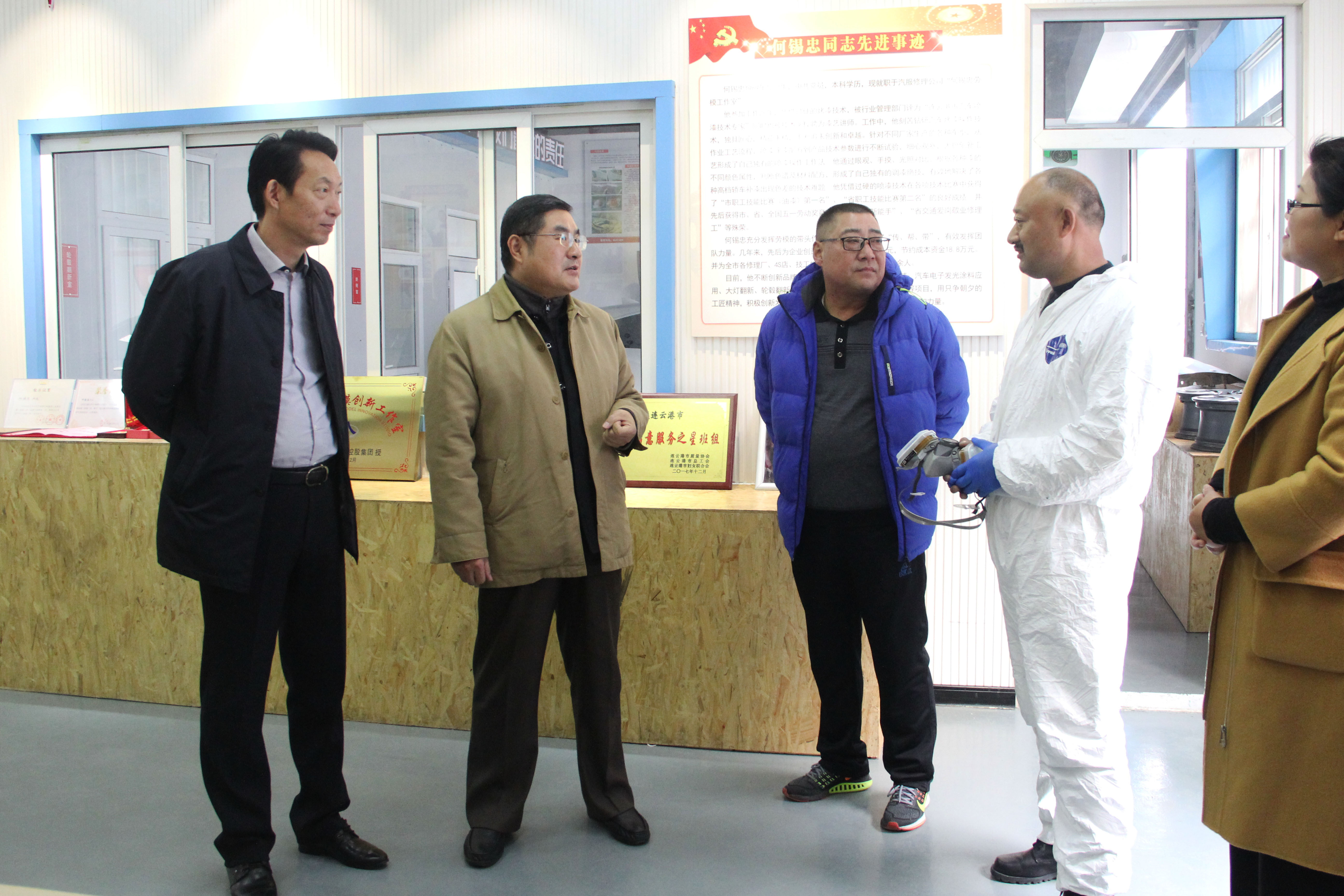 11月29日下午,市总工会副主席陈键,劳动和经济工作部部长许小兵、副部长周佃元,江南app最新版下载,江南(中国)工会主席王中永及工会相关负责人,到海通汽服公司修理公司指导“何锡忠劳模工作室”建设工作。
