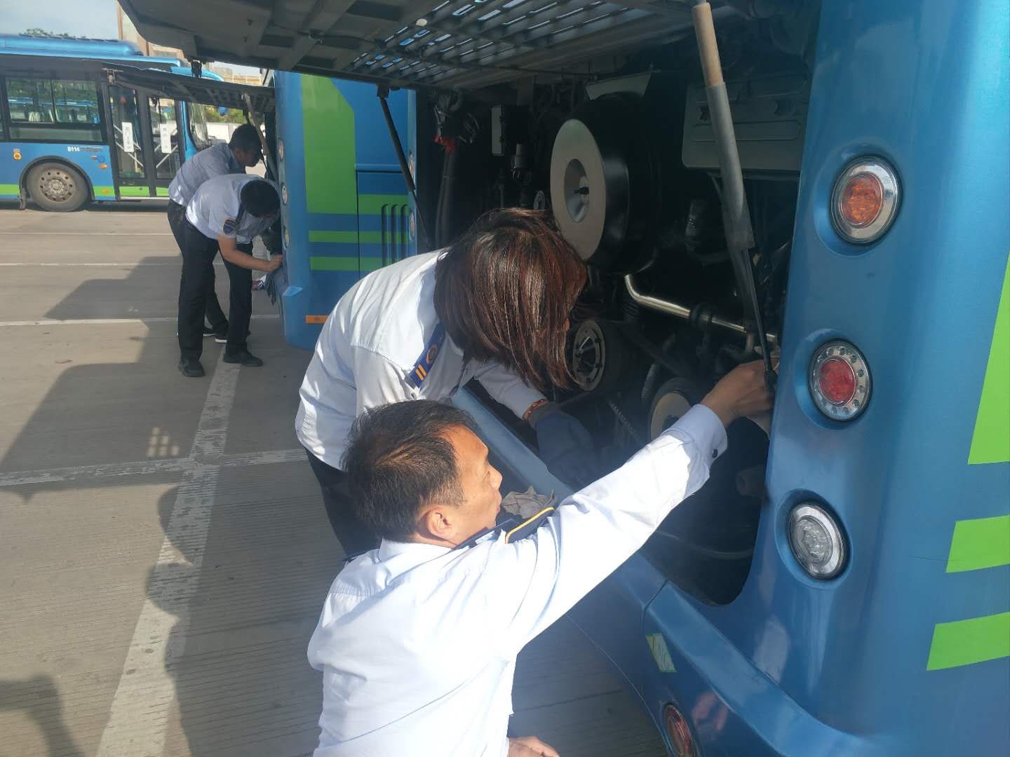 为了响应公交江南app最新版下载,江南(中国)的安全生产、优质服务百日竞赛,发挥党员先锋带头作用,6月1日下午,公交江南app最新版下载,江南(中国)快速公交事业部第一党小组组织小组成员与一线驾驶员开展了清洁车辆发动机卫生工作。