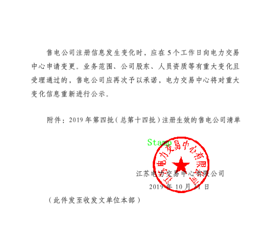 按照公司战略规划部署、推进售电牌照办理工作。明茂公司前期派专人赴江苏省电力交易中心对售电牌照办理流程和办理需要的资料进行咨询、了解。7月初,运营管理部对注册售电牌照必备的材料进行注册、整理、汇总,终于在10月29日顺利通过江苏省电力交易中心有限公司的注册公示。现正在协助综合办办理登录江苏省电力交易中心网站需要的江苏CA电子证书业务。