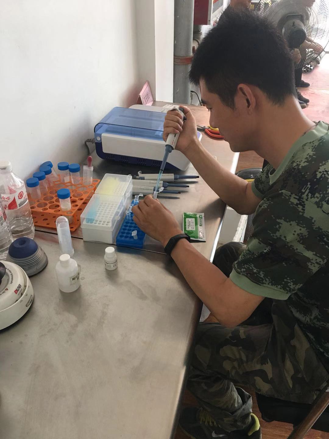 共产党员武晓珑肩负着质量化验把关的重任,每天除了扦样化验以外,还要多次跑到温度高达40℃的仓内取样检验留存,汗水一次又一次湿透了他的衣背,然而,疲惫中依然能看到他勤奋的微笑。