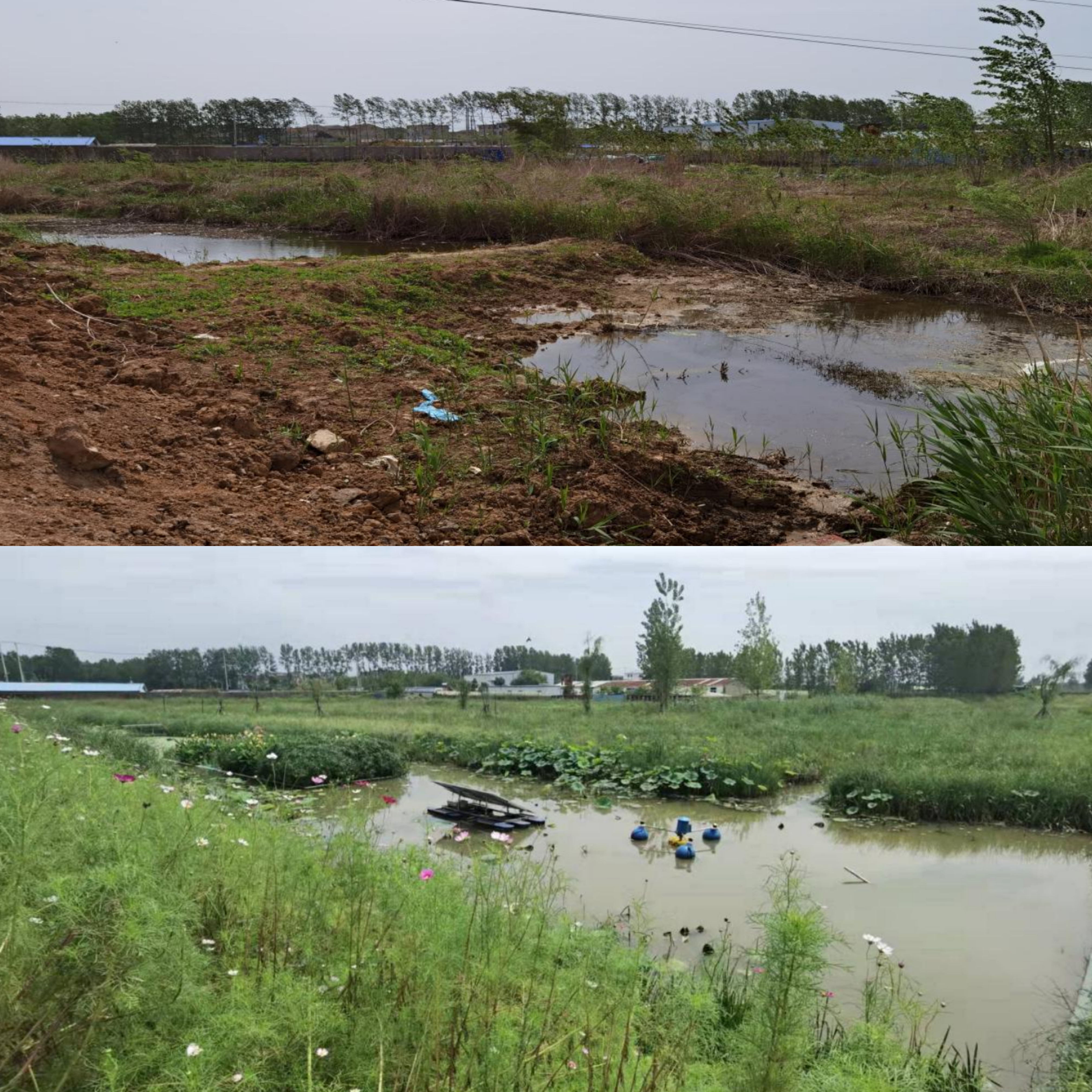 此次石梁河库区截污治污示范工程主要收集和处理传统农业面源污染、分散式畜禽养殖污染、农村生活污水等类型污染,使得原来直接流入石梁河水库的面源污染经过系统的拦截净化,保障水库水质安全。其中,刘金村已完成清淤约11000立方、杉木桩1800米、生态浮床525平方、拦水坝3道、垃圾截流网3道、栽植水生植物16800平方、缀花高草地12000平方;贾庄村已完成清淤约4000立方、4m杉木桩692米、1.5m杉木桩320米、生态浮床94平方、拦水坝9道、垃圾截流网1道、栽植水生植物5500平方、缀花高草地4100平方。