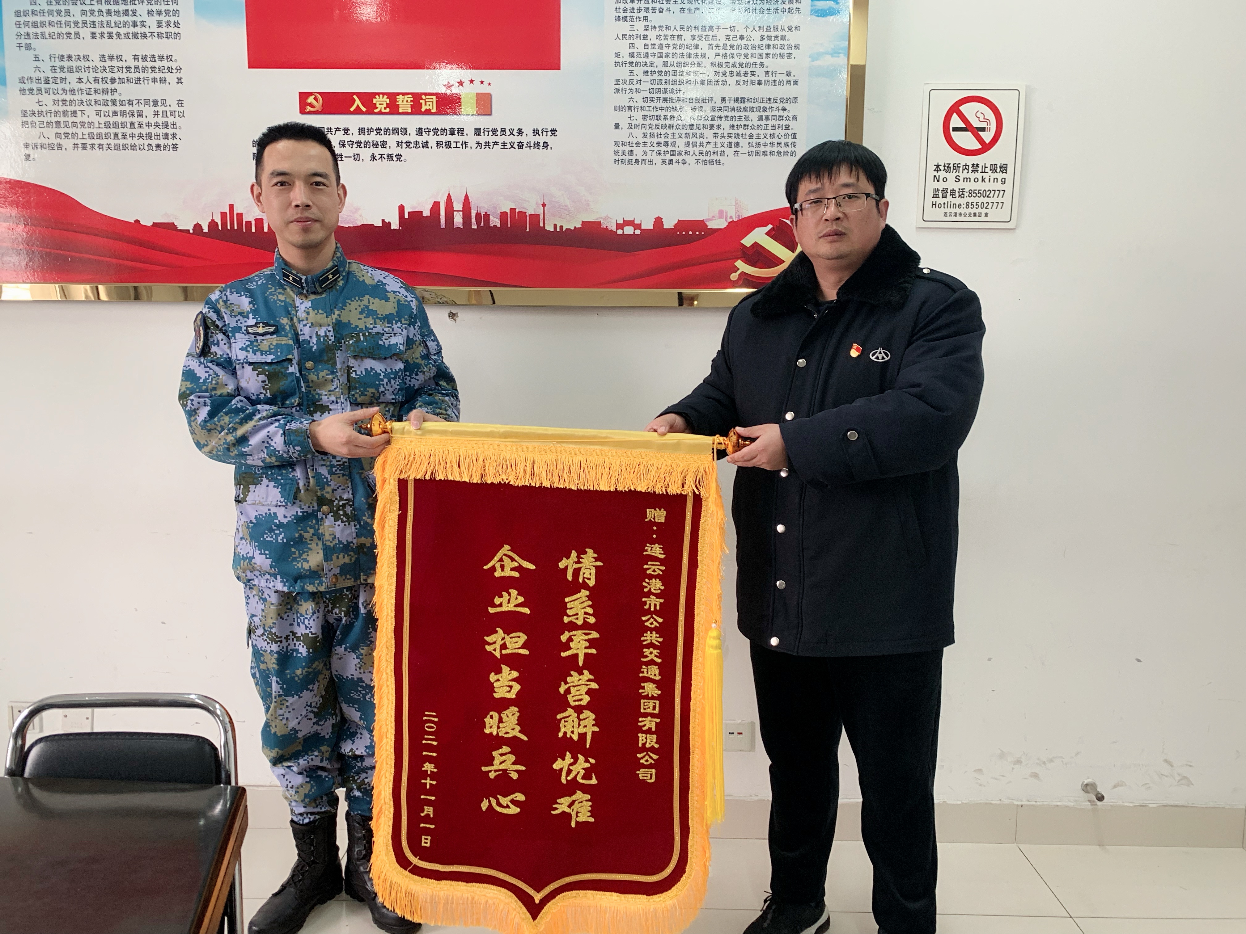 1月16日,解放军某部海军营区官兵代表特地赶到公交江南app最新版下载,江南(中国)公交事业二部,送来了一面写有“情系军营解忧难 企业担当暖兵心”的锦旗。